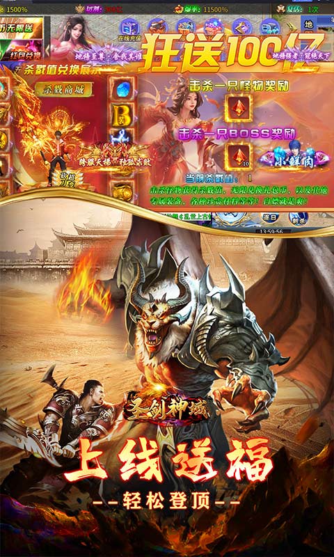 2.送千倍爆率、首充大禮、炫酷時(shí)裝、海量貨幣!
