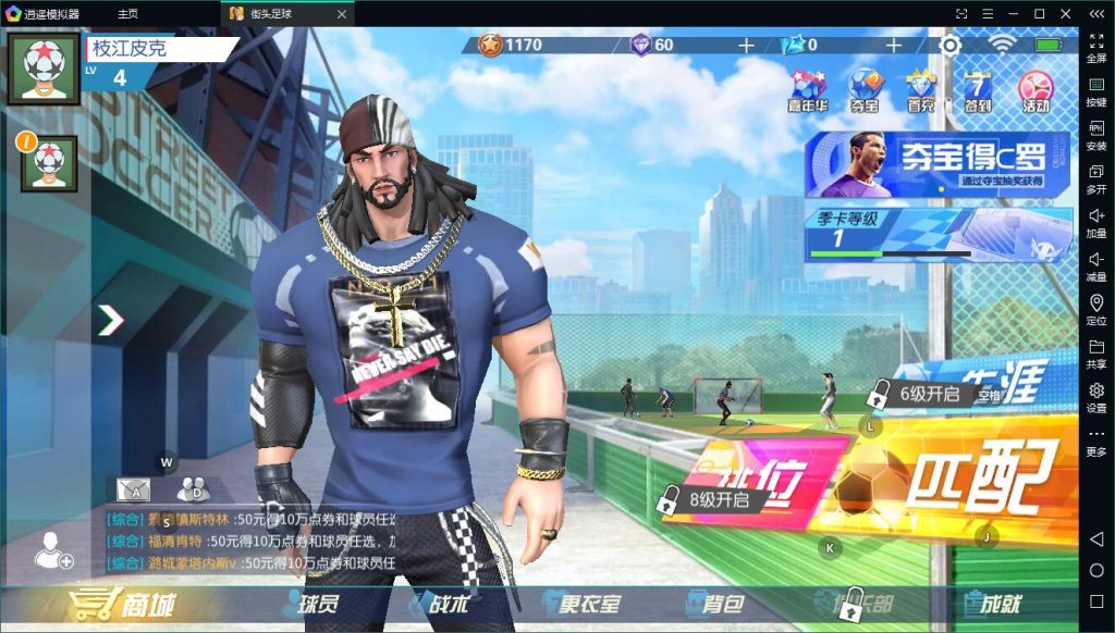 搜索下載逍遙安卓模擬器,并在游戲市場搜索游戲街頭足球下載即可安裝。