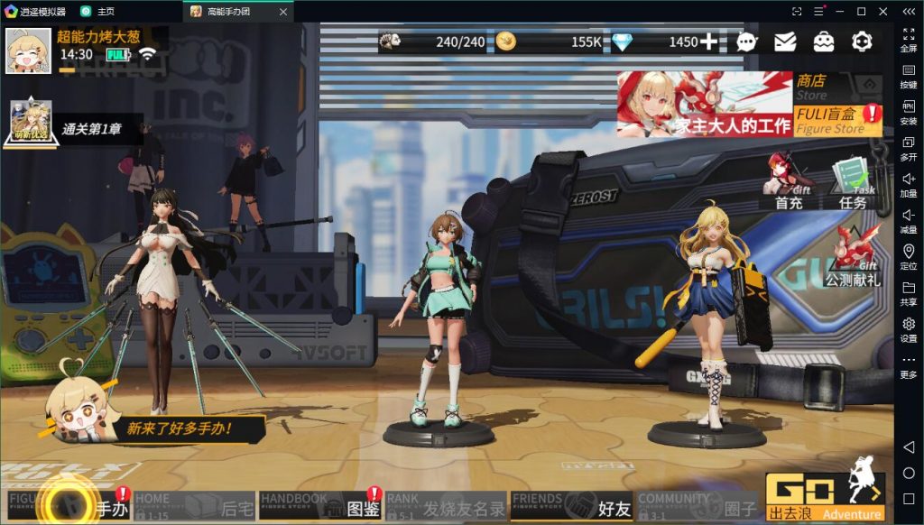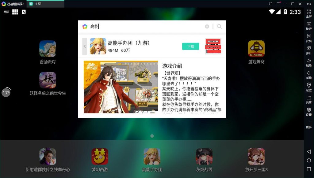 搜索下載逍遙安卓模擬器,并在游戲市場(chǎng)搜索下載高能手辦團(tuán)即可下載安裝游戲 。