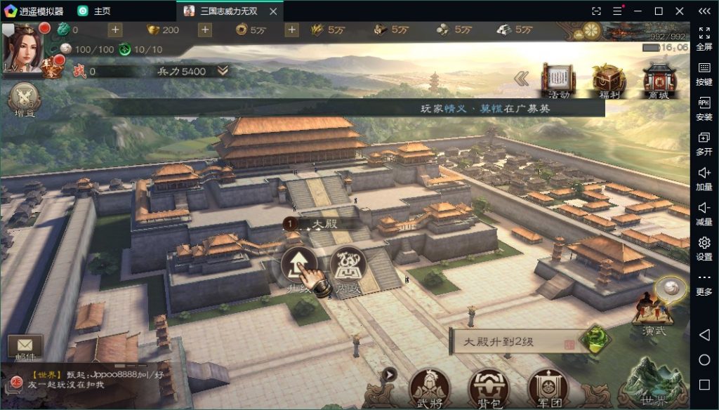 使用逍遙安卓模擬器,并在逍遙市場搜索下載三國志威力無雙,即可在電腦上玩三國志威力無雙。