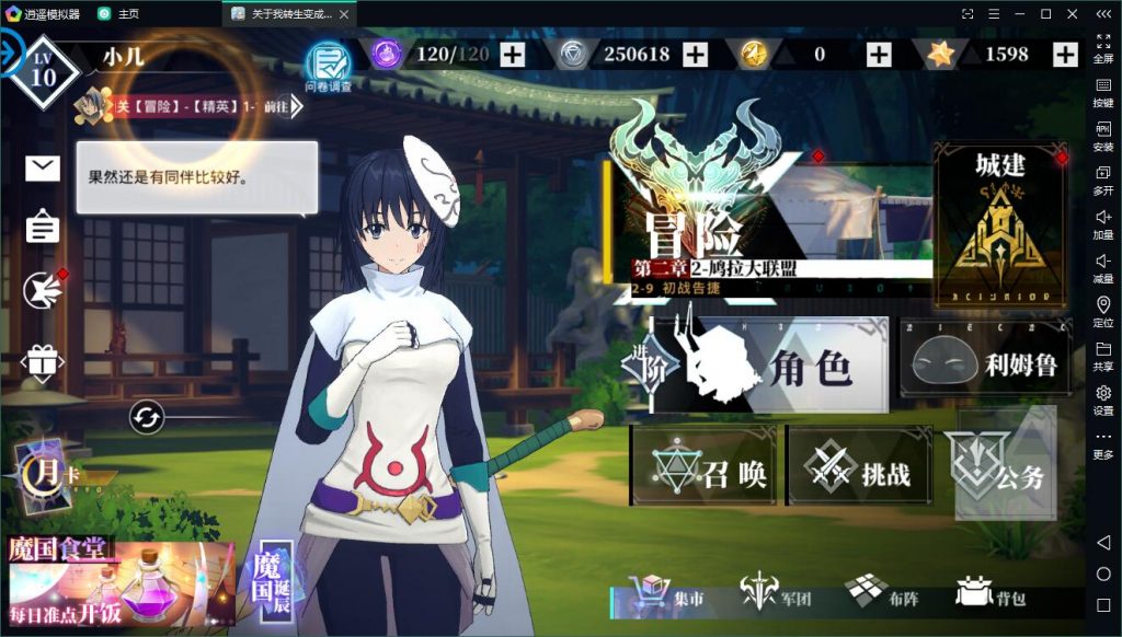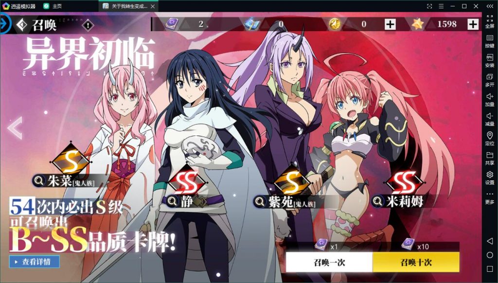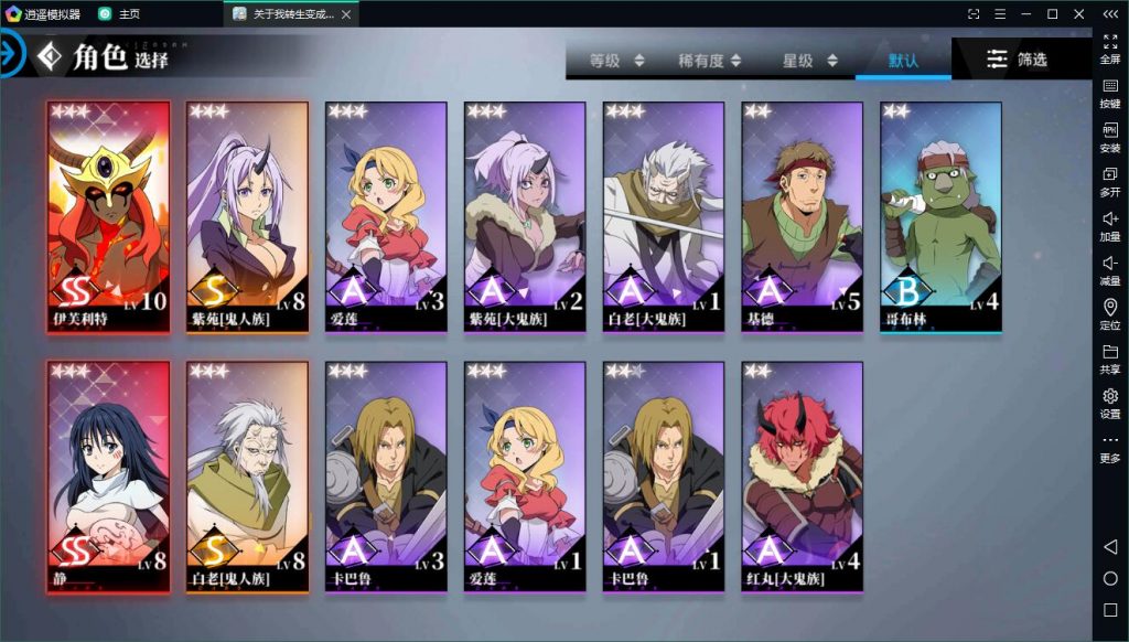 現(xiàn)在可以直接在電腦上玩關(guān)于我轉(zhuǎn)生變成史萊姆這檔事電腦版,賬號(hào)和手機(jī)是互通的。只需要使用逍遙模擬器即可,流暢無卡頓,很適合玩關(guān)于我轉(zhuǎn)生變成史萊姆這檔事這種卡牌回合制游戲。