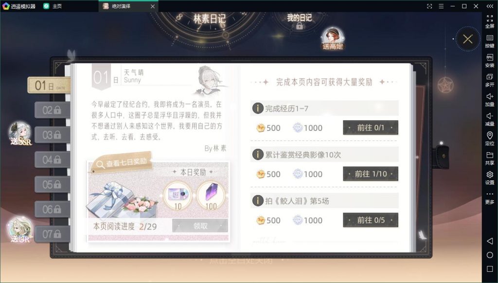 現(xiàn)在可以直接在電腦上玩絕對(duì)演繹電腦版,賬號(hào)和手機(jī)是互通的。只需要使用逍遙模擬器即可,流暢無卡頓,很適合玩絕對(duì)演繹這種女性向養(yǎng)成游戲。