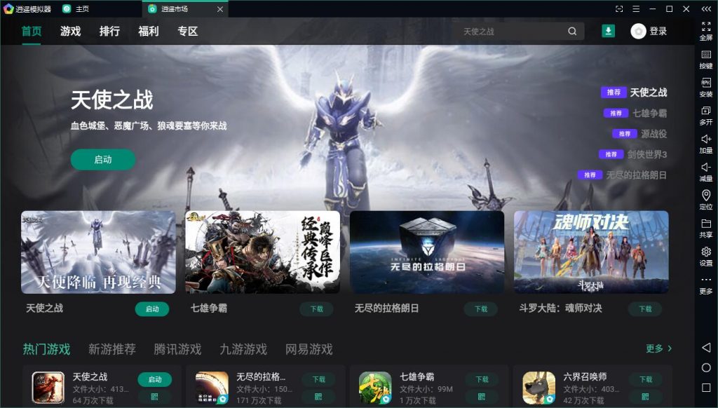 現(xiàn)在可以直接在電腦上玩天使之戰(zhàn)電腦版,賬號和手機是互通的。只需要使用逍遙模擬器即可,流暢無卡頓,很適合玩天使之戰(zhàn) 這種角色扮演游戲。