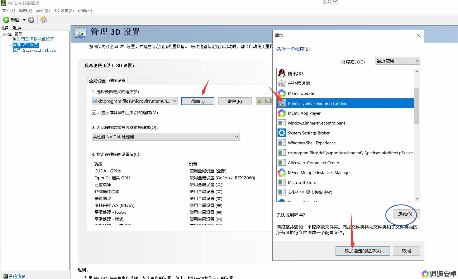 步驟二 :管理3D設(shè)置選項 里找到 添加按鈕