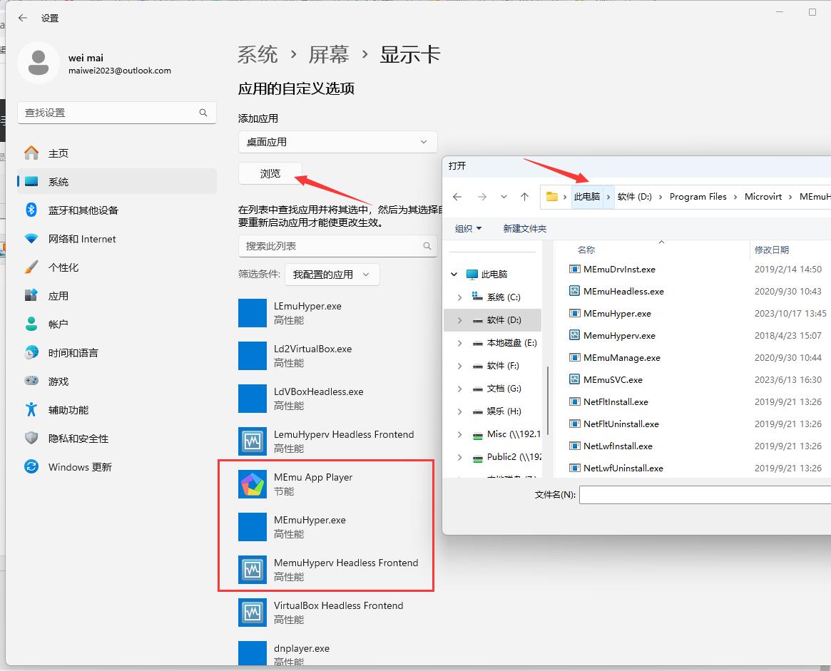 1.點擊 瀏覽 打開 模擬器安裝目錄 里的 MEmuHyperv文件夾