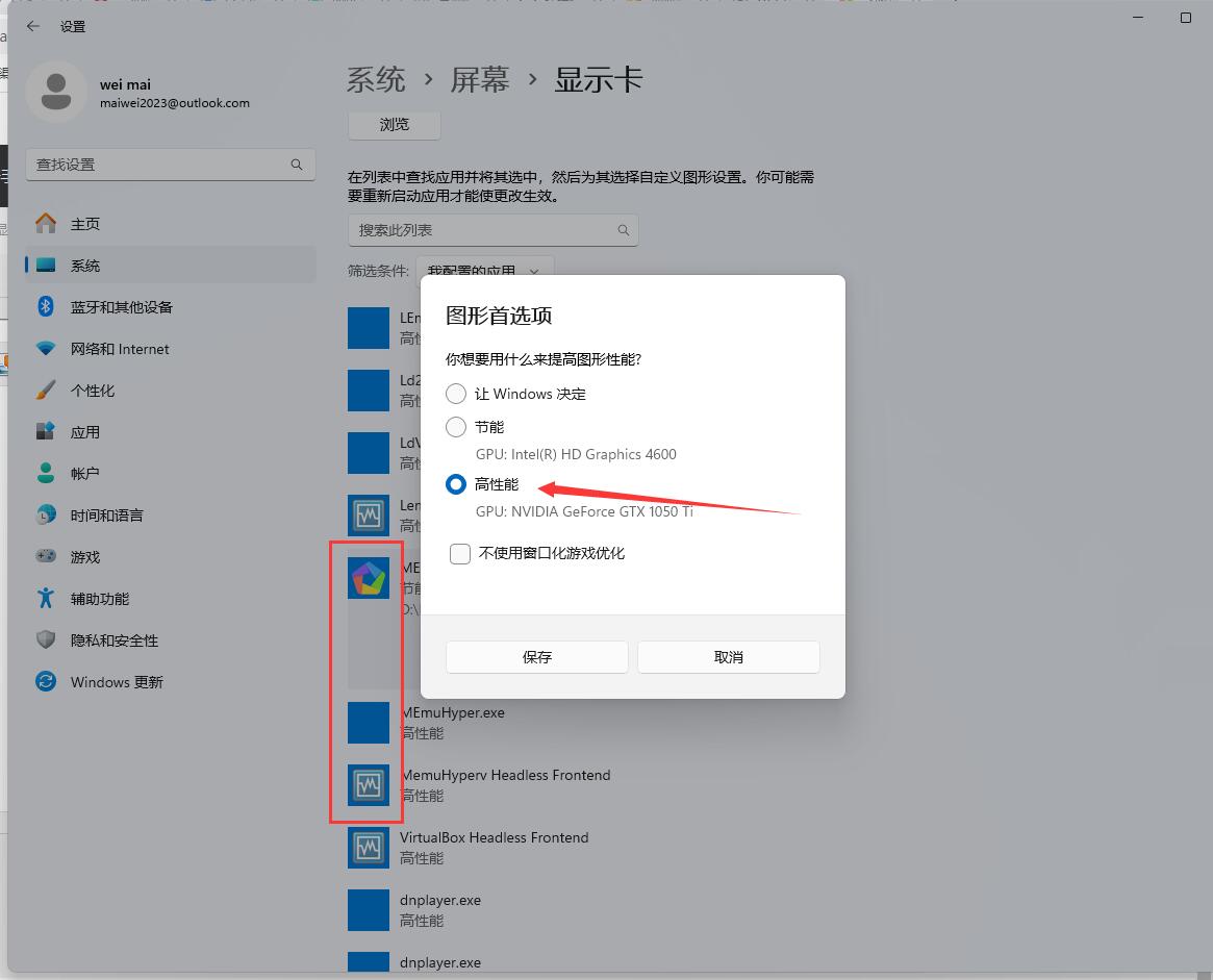 5、選擇添加的3個進程,更改為高性能,保存后重啟模擬器即可。