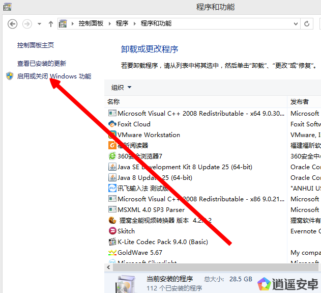 接下來點(diǎn)擊啟用或關(guān)閉windows功能。