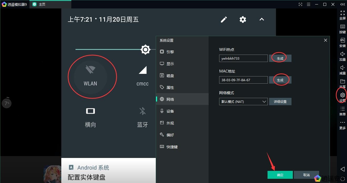 解決方法:下拉菜單點(diǎn)擊WLAN圖標(biāo)后自動(dòng)打開WiFi 或者設(shè)置中點(diǎn)擊生成 確定后重啟模擬器如圖下