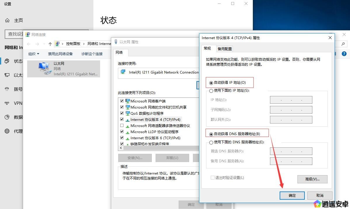 3.當前使用 網卡右鍵屬性 找到Internet協議版本4(TCP/IPV4)屬性 NDS設置自動獲取已經自動 跳過