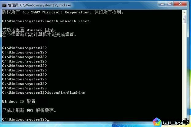 2、ipconfig /flushdns回車【按回車重置后,重啟電腦】