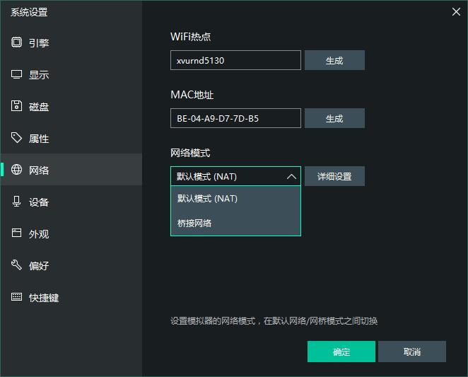MAC地址:設(shè)置模擬器的MAC地址信息。 三、網(wǎng)絡(luò)設(shè)置–網(wǎng)絡(luò)模式/橋接設(shè)置: