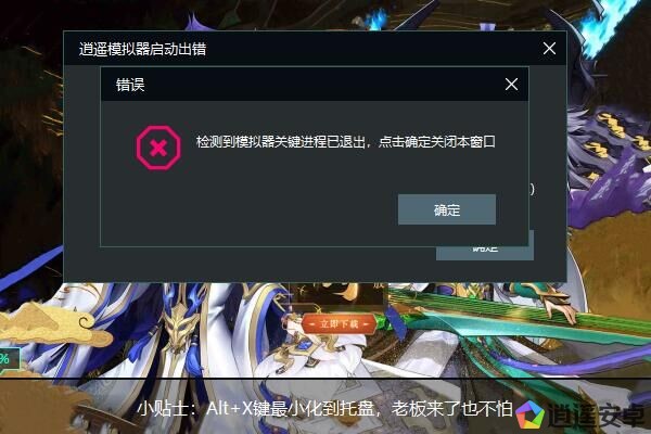 啟動(dòng)模擬器時(shí)提示檢測到模擬器進(jìn)程已經(jīng)退出 一月 15, 2024 二月 21, 2024 常見兩種問題1.啟動(dòng)時(shí)出現(xiàn) 可能數(shù)據(jù)損壞嘗試 多開器新建一個(gè)是否正常啟動(dòng)2.多開出現(xiàn) 此類常見電腦 內(nèi)存 和CPU占用過高導(dǎo)致 進(jìn)程退出