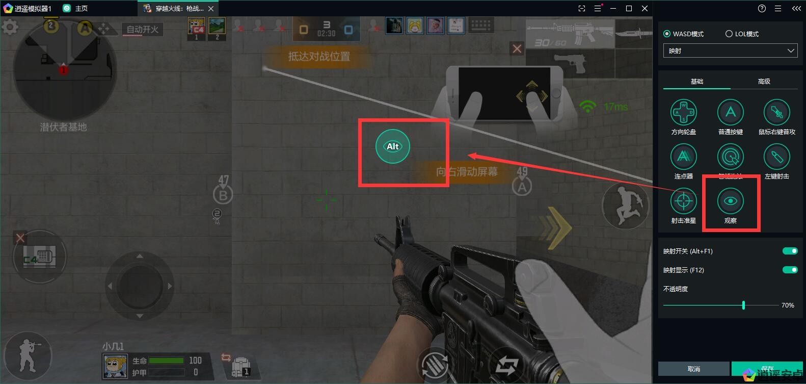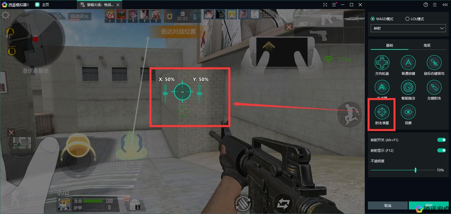 作為FPS的靈魂,射擊是必不可少的按鍵,把左鍵射擊拖拽到游戲?qū)?yīng)位置,按下鼠標(biāo)左鍵之后即可射擊敵人。