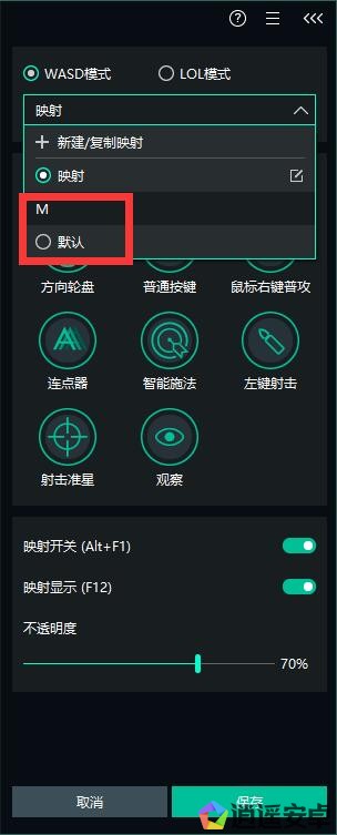 4、如果對(duì)自己的設(shè)置不滿意,想要切換為原來默認(rèn)的按鍵映射,在同樣的地方點(diǎn)開下拉框,勾選“默認(rèn)”就可以了。