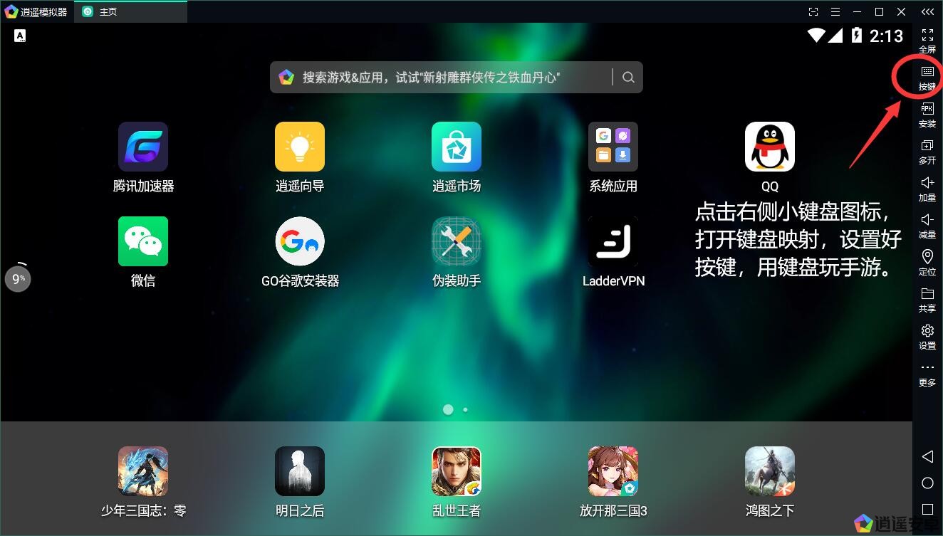 把點擊鍵拖拽到游戲對應界面,可以設置攻擊、打開背包等功能。