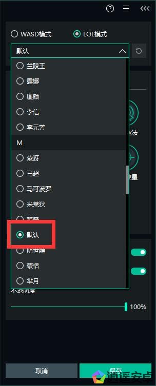 4、如果對自己的設(shè)置不滿意,想要切換為原來默認(rèn)的按鍵映射,在同樣的地方點(diǎn)開下拉框,勾選“默認(rèn)”就可以了。