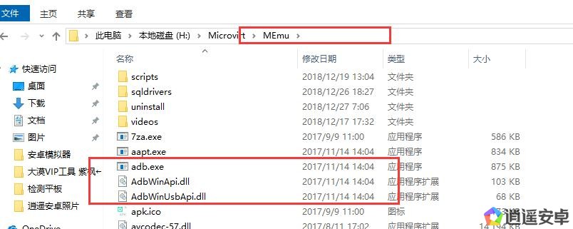 例如目錄 H:\Microvirt\MEmu 文件夾里自帶adb 程序