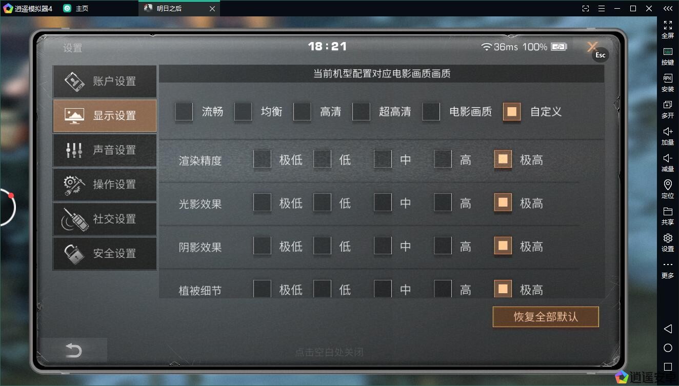 使用逍遙安卓模擬器進入明日之后可以將游戲調(diào)整為電影級別畫質(zhì),高幀率進行游戲