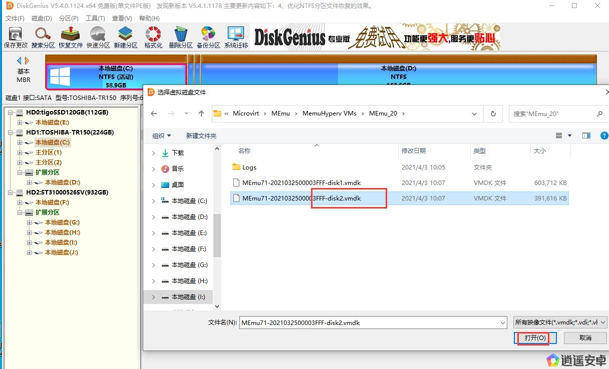 打開 模擬器安裝目錄 或者你的儲(chǔ)存目錄 MemuHyperv VMs 文件夾 找到你需要在多開中損壞的編號(hào) 例如 MEmu-20 打開 disk2.vmdk文件