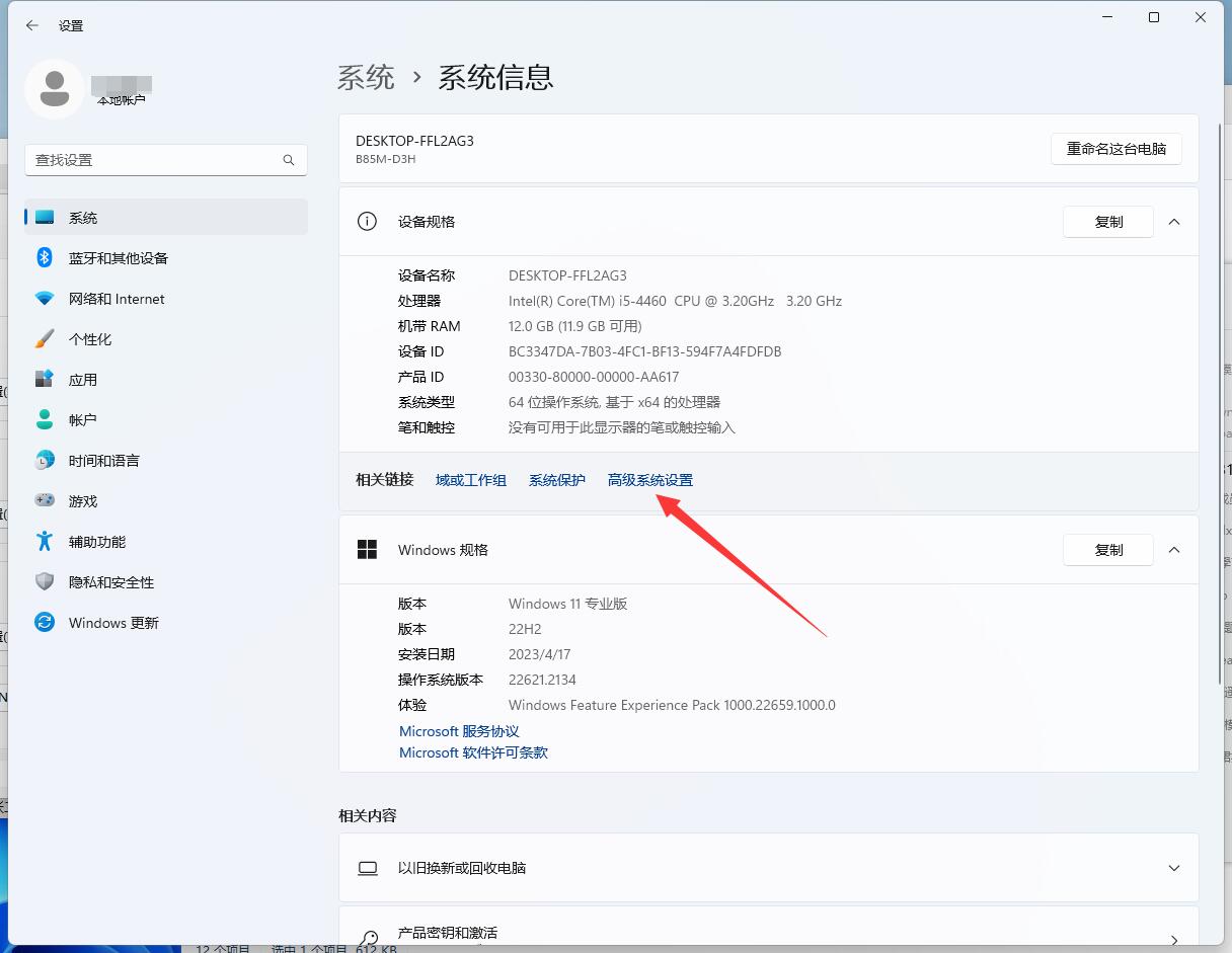 1、在電腦的系統(tǒng)設(shè)置中-選擇高級系統(tǒng)設(shè)置,(如圖)