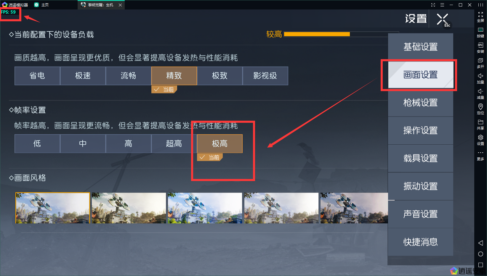打開游戲設(shè)置界面,勾選幀率設(shè)置里的“極高”(建議高配置電腦開啟)。
