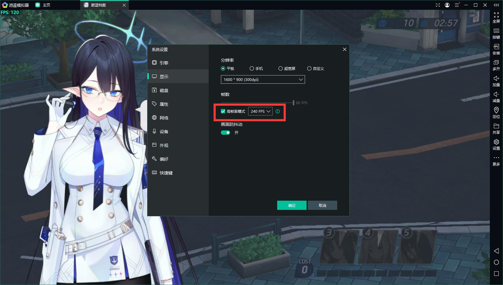 【蔚藍(lán)檔案】120幀/240幀設(shè)置教程 一月 16, 2024 二月 21, 2024 >>推薦使用官網(wǎng)新版本的安卓9.0鏡像進(jìn)行游玩!打開(kāi)模擬器設(shè)置界面,勾選高幀率并選擇你想要的幀率(沒(méi)有該選項(xiàng)的請(qǐng)至官網(wǎng)升級(jí)至新版本),然后重啟模擬器打開(kāi)游戲就可以看到幀率已經(jīng)超過(guò)了120 新手教程下載資源時(shí)可能會(huì)有些卡頓,等資源下載完畢幀率就會(huì)恢復(fù)!
