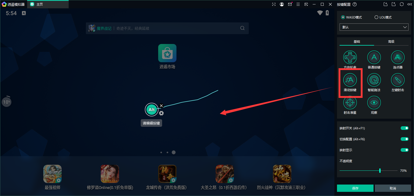 1、wasd模式:使用鍵盤來操作人物移動(dòng),用戶可以根據(jù)喜好來自定義編輯按鍵。