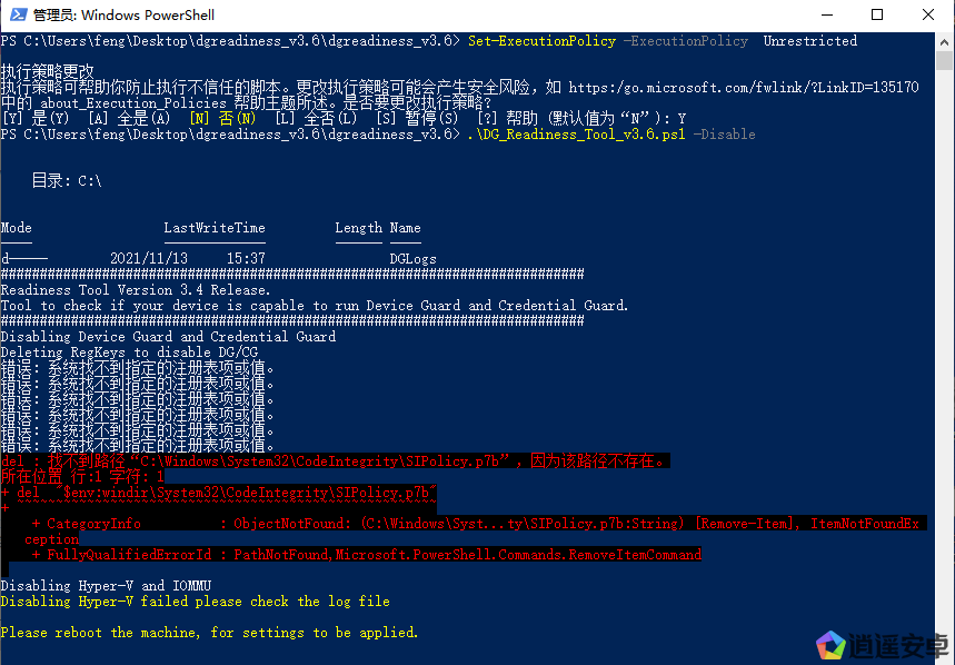 DG_Readiness_Tool_v3.6.ps1 -Disable (禁用Virtualization Based Security,重啟后生效)