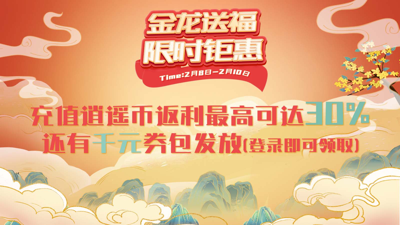 活動二:逍遙幣限時充返,高返利高達30%