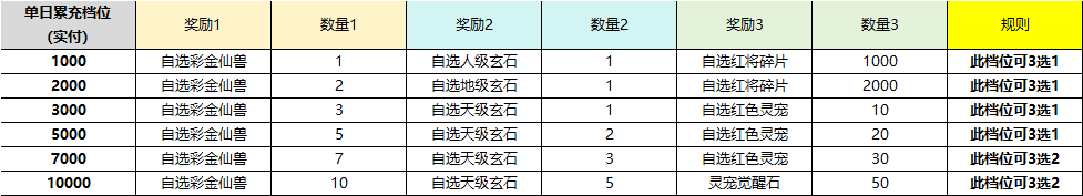 2、單日累充至指定檔位,可自選檔位內的獎勵