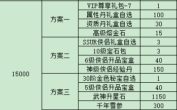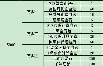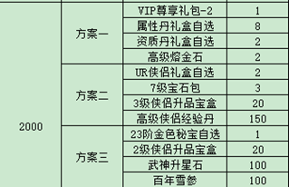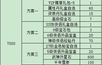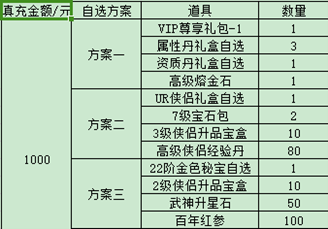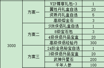 例:比如玩家在7.1實(shí)付3000元,可以獲得3000元檔位的禮包碼一個(gè),玩家在游戲內(nèi)使用該禮包碼后可以在游戲內(nèi)自行選擇所需方案。