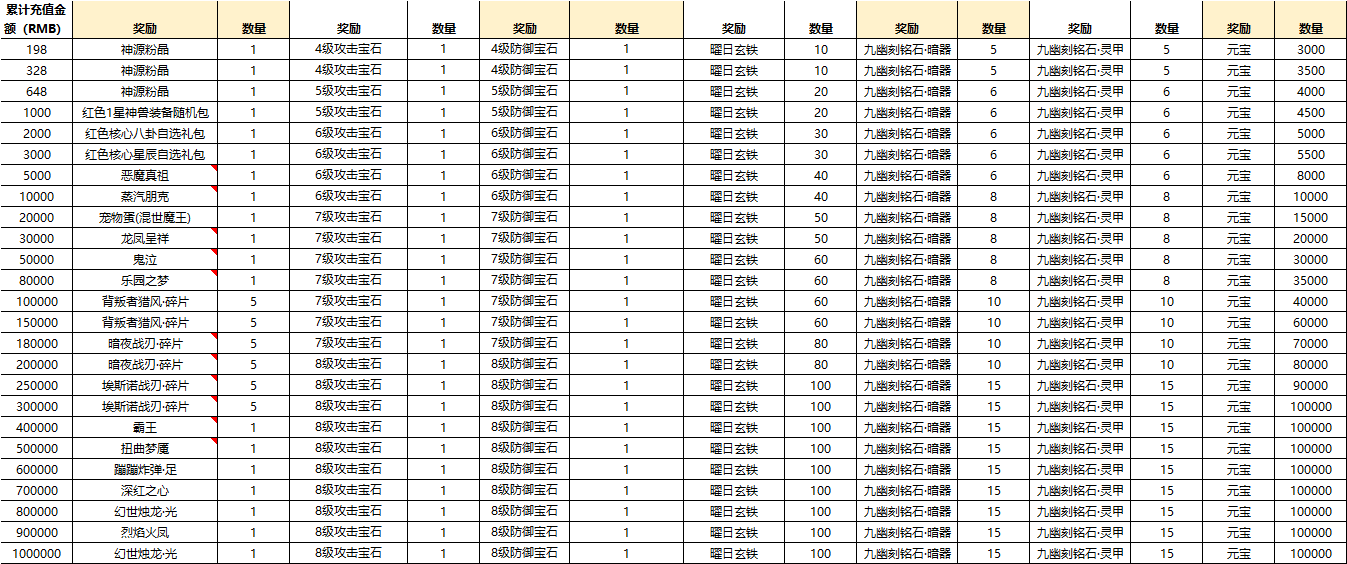 參與方式:活動(dòng)期間,玩家充值指定單筆金額,可以領(lǐng)取對(duì)應(yīng)的禮包。