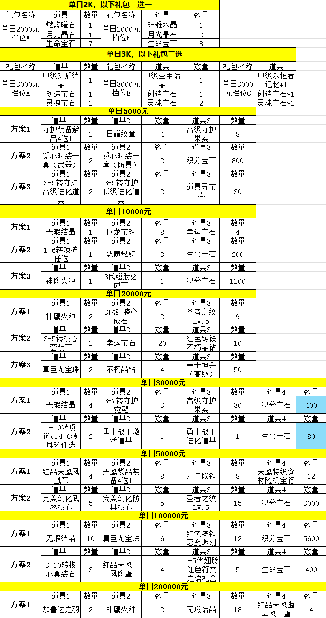 單日充值達(dá)標(biāo)后,僅限領(lǐng)取一個(gè)方案領(lǐng)取一次(不可以疊加),可以選擇達(dá)標(biāo)金額以下的任一檔位,例如單日充值達(dá)2w,2w檔3個(gè)方案3選1,也可以領(lǐng)其他低檔位方案,僅限一次