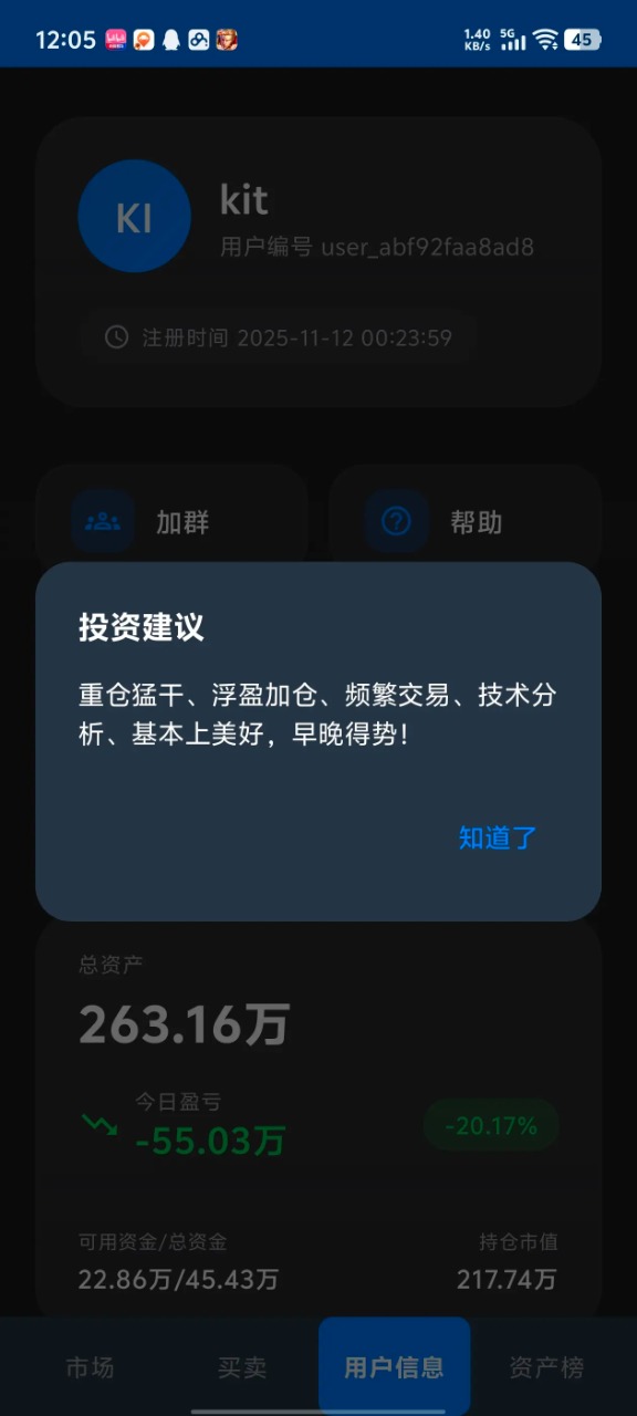 簡介不存在脫離實(shí)際的機(jī)械數(shù)字循環(huán),更沒有單向輸出的枯燥演練,這里是千萬玩家實(shí)時(shí)共創(chuàng)的鮮活金融競技場 —— 每一位參與者的操作都在實(shí)時(shí)交織、相互影響,共同搭建起一個(gè)動(dòng)態(tài)流轉(zhuǎn)、充滿變數(shù)的真實(shí)交易環(huán)境。你的每一次果斷買入、每一次理性拋售,或是每一次精準(zhǔn)止盈、每一次及時(shí)止損,都能即時(shí)傳導(dǎo)至市場,直接引發(fā)股價(jià)的實(shí)時(shí)起伏 —— 可能是小幅震蕩,也可能是大幅拉升,甚至在關(guān)鍵節(jié)點(diǎn)上,足以扭轉(zhuǎn)短期行情,撬動(dòng)整個(gè)市場的趨勢偏向! ? 玩家才是市場的絕對主角:在這里,你從來不是被動(dòng)跟隨數(shù)據(jù)的旁觀者,而是真正主導(dǎo)市場走向的核心力量!你的資金規(guī)模,就是你在這個(gè)競技場中的話語權(quán)重量 —— 資金越集中,影響越深遠(yuǎn)。精準(zhǔn)布局買入,就能為目標(biāo)標(biāo)的注入強(qiáng)勁動(dòng)力,助推股價(jià)穩(wěn)步攀升;果斷選擇拋售,則可能引發(fā)連鎖反應(yīng),觸發(fā)市場短期震蕩調(diào)整。每一個(gè)看似微小的交易決策,都不是無意義的嘗試,而是能實(shí)實(shí)在在改寫 K 線的運(yùn)行軌跡,留下清晰的市場印記。這種從決策到結(jié)果即時(shí)反饋、從個(gè)人操作到市場聯(lián)動(dòng)的沉浸式操控體驗(yàn),是傳統(tǒng)模擬盤那種 “自說自話” 的單向演練永遠(yuǎn)無法企及的 —— 你不再是看客,而是真正能 “動(dòng)手改變市場” 的參與者!