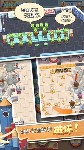 點(diǎn)擊屏幕即可破壞一切,輕松簡單的操作方式讓你發(fā)泄自身的怒火,跨越障礙,破壞無良老板們的辦公室吧!