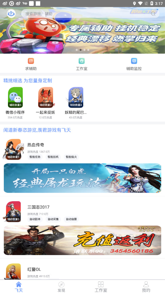 飛天助手是一款基于手機游戲興趣愛好的永久免費的手游輔助軟件,為市面上COC、王者榮耀、天龍八部、夢幻西游、問道、微信小游戲等諸多熱門、經(jīng)典、新鮮手機游戲提供優(yōu)質(zhì)免費手游輔助腳本資源,這里為大家提供飛天助手下載,需要的玩家可在本頁下載飛天助手官網(wǎng),體驗海量優(yōu)質(zhì)免費輔助,所有手游輔助均可永久免費使用!